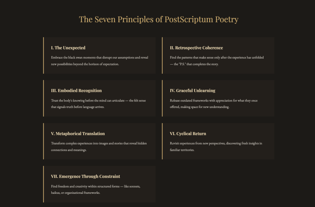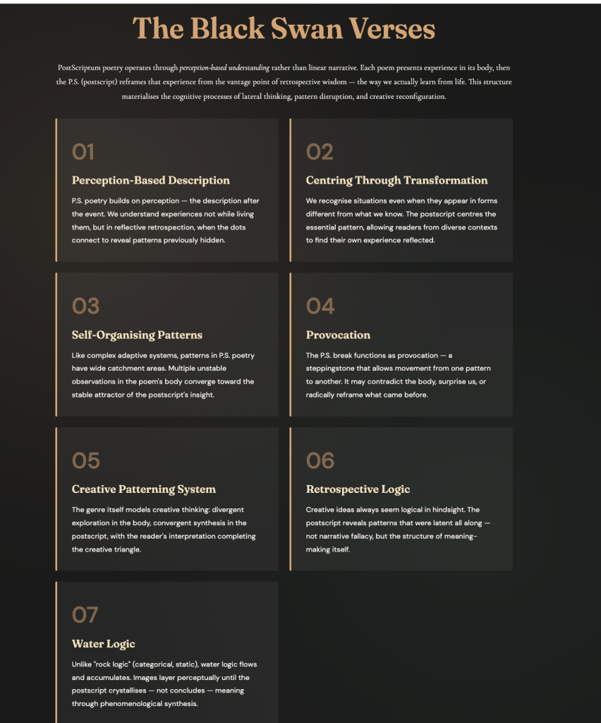 The Black Swan Verses: PostScriptum Poetry for Learning, Unlearning, and Relearning